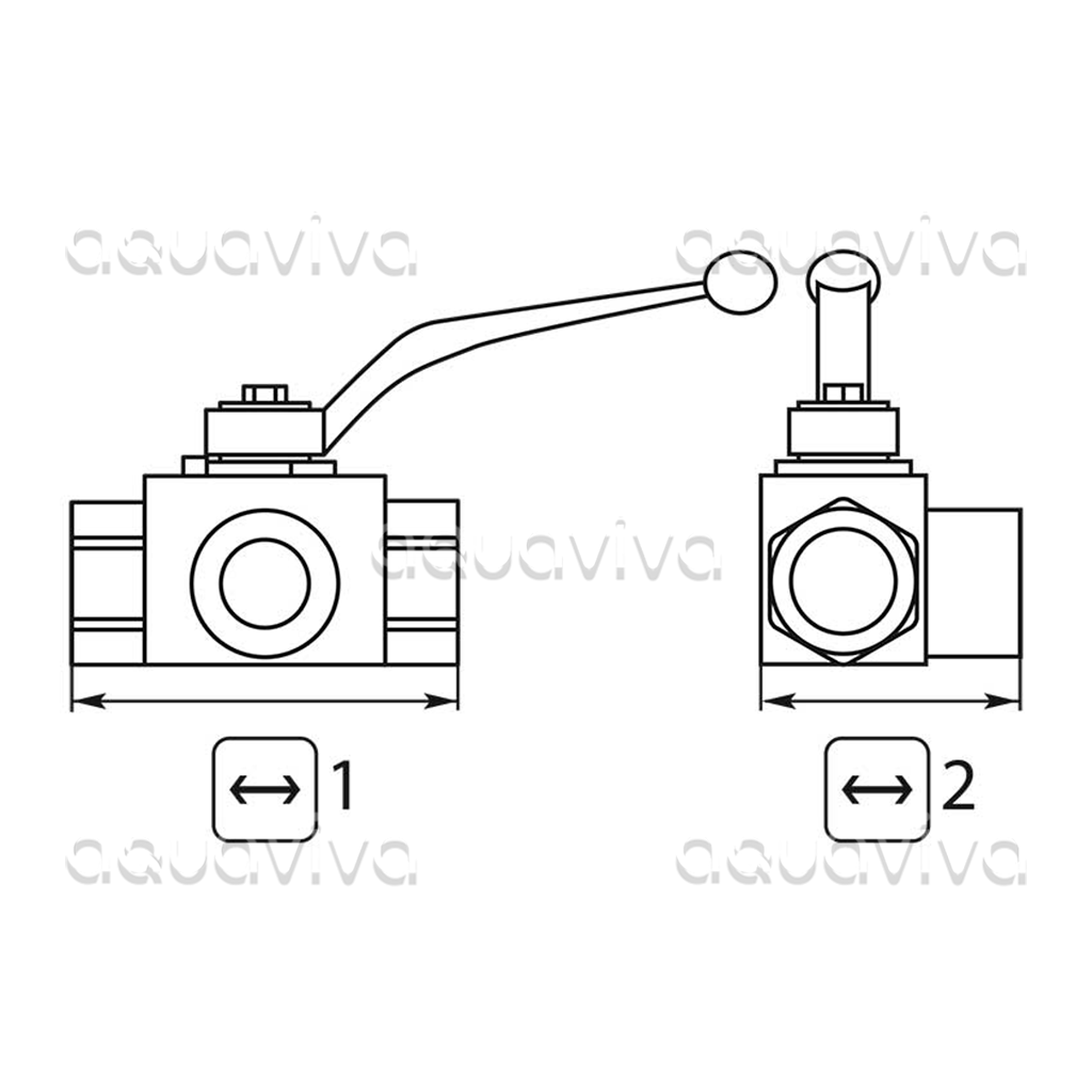 Кран шаровый 3-х ходовой 315 бар, вх./вых./вых.3/4"г, оцинкованная сталь