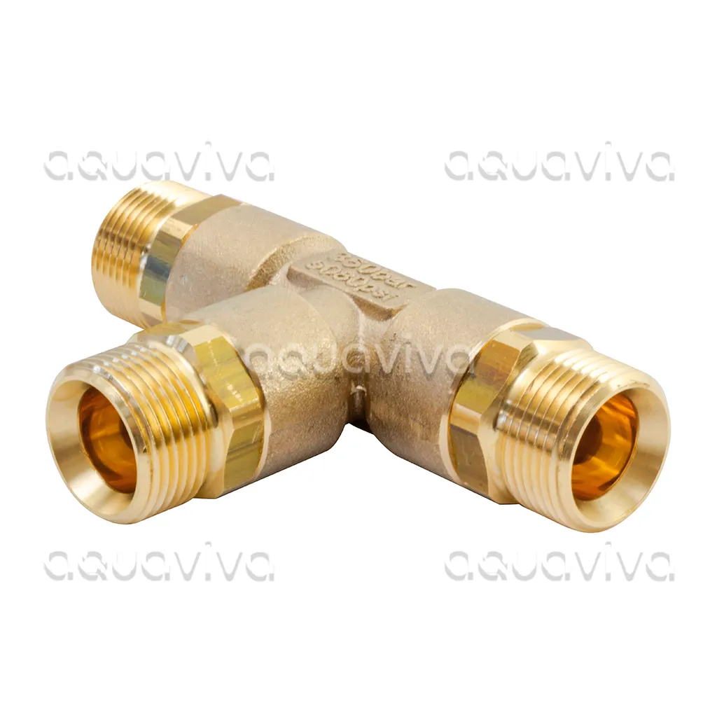Переходник, тройник, М22х1,5ш - М22х1,5ш - М22х1,5ш, 350 бар, латунь