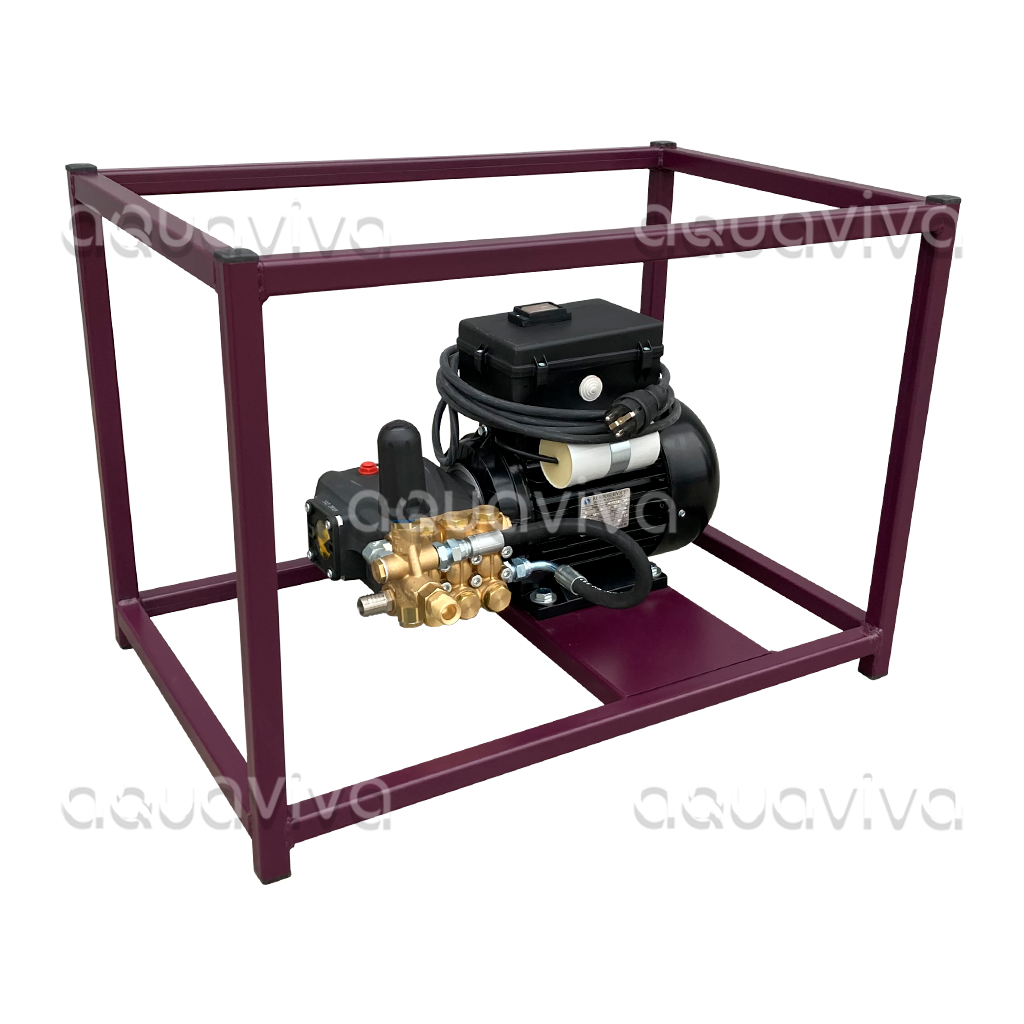 Установка используется для мойки корпусов пищевых предприятий (например, корпуса выращивания птицы), мойки сельхозтехники, в перерабатывающей промышленности, для промывки канализации, в химической и нефтегазовой отрасли, на автомоечных комплексах для мойки грузового транспорта и т.д. Комплектация: - Рама стальная - Моноблок мотор-помпа серии HPS с электронным блоком управления с влагозащитным выключателем - Регулятор давления с системой By-Pass без датчика «Total-stop» - Электрический кабель подключения 4м Дополнительные опции: - Регулятор давления с системой By-Pass с датчиком «Total-stop» -Рукав высокого давления 2SN8 10, 15, 20, 25 м, с фитингами - Пистолет со струйной трубкой и форсункой 600 мм - Манометр - Входной фильтр тонкой очистки