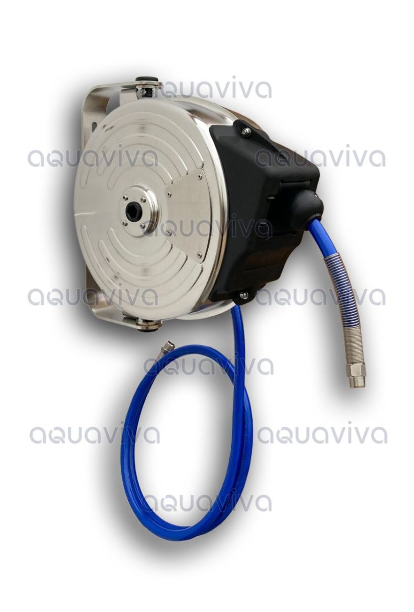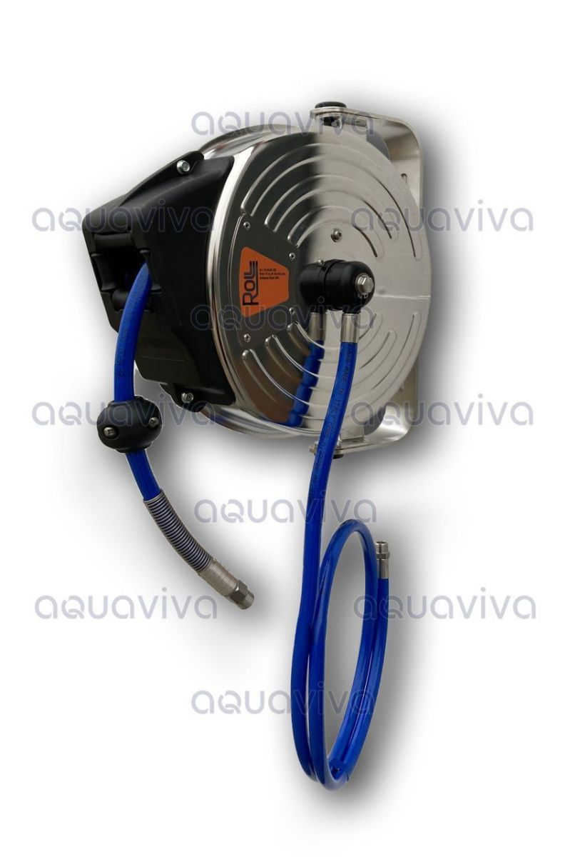 Барабан закрытый автоматический, 20 бар, шланг 10 м Ø10х14,5 мм, вх.3/8"ш, вых.1/4"ш, нерж.сталь Roll