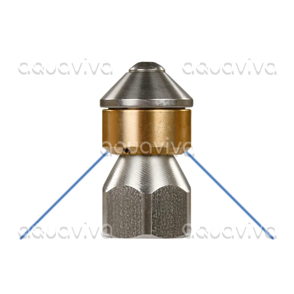 Роторная форсунка каналопромывочная, вх. 3/8"г, сопло 15, бой 3R, 250 бар, нерж. сталь / латунь