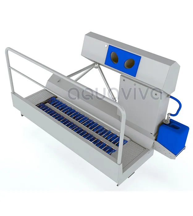 Это двухфункциональный санпропускник, который позволяет чистить и обработать дезраствором обувь персонала и обработать дезинфекционным составом руки с последующим контролем прохода.