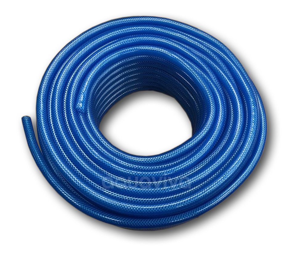Шланг прозрачный ПВХ с текстильной оплеткой, Ø 8 мм, 60˚C, синий R+M