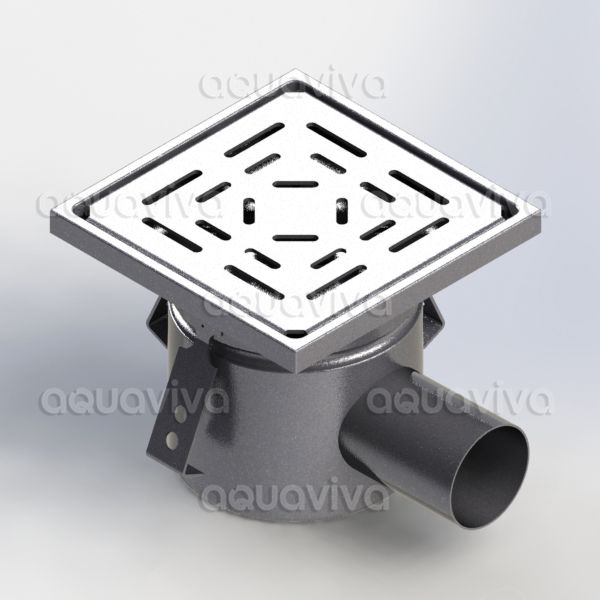 Трап 150х150мм, горизонт.подкл. 50мм, нерж. сталь AISI 304, настил перфор-й AQUAVIVA