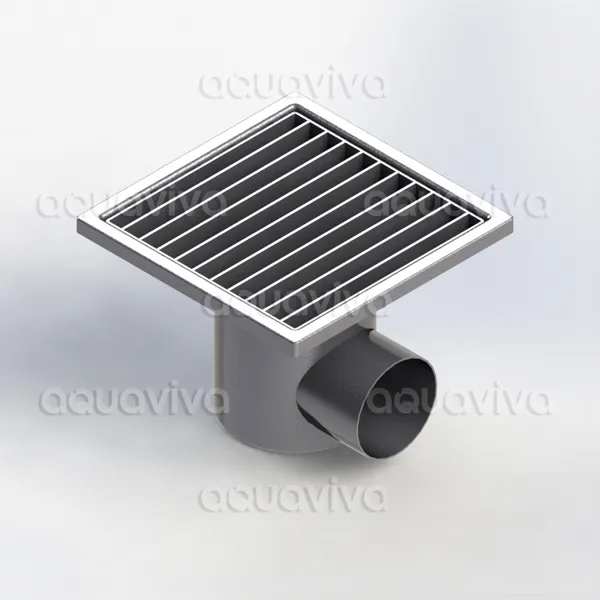 Трап промышленный 400х400мм, горизонт. подкл. 160мм, нерж. сталь AISI 304, решетка щелевая AQUAVIVA