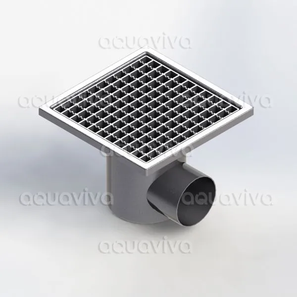 Трап промышленный 400х400мм, горизонт. подкл. 160мм, нерж. сталь AISI 304, решетка ячеистая AQUAVIVA