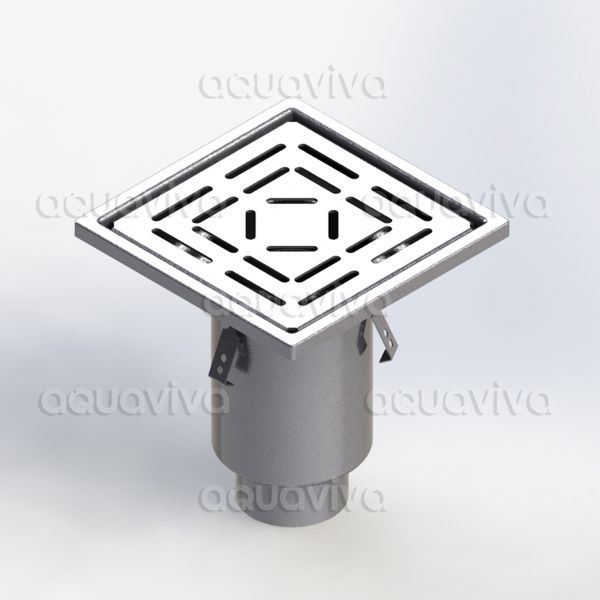 Трап промышленный 400х400мм, верт.подкл. 160мм, нерж. сталь AISI 304, настил перфор-й AQUAVIVA