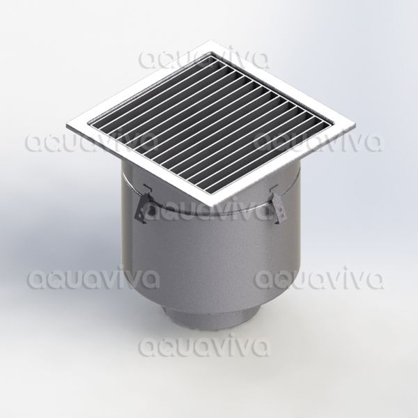 Трап промышленный 400х400мм, верт.подкл. 200мм, нерж. сталь AISI 304, решетка щелевая AQUAVIVA